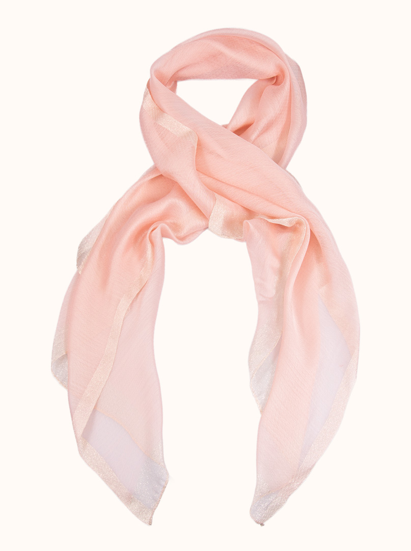 Różowy kolor szala dodaje mu delikatności i kobiecego uroku, podczas gdy złote wykończenie nadaje mu nutę luksusu i szyku. To połączenie sprawia, że szal doskonale sprawdzi się na wieczorowych wyjściach, przyjęciach czy formalnych spotkaniach.
