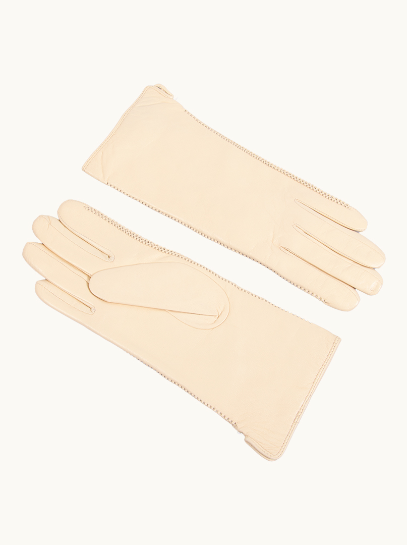 Skóra miękka jak muśnięcie. Delikatnie podąża za linią dłoni, podkreślając każdy ruch. Minimalistyczny krój, który działa bardziej jak biżuteria niż dodatek. Gładka powierzchnia przyciąga wzrok subtelnym połyskiem. To rękawiczki, które dodają pewności siebie — ciche, ale magnetyczne. Elegancja, która zostaje w pamięci.