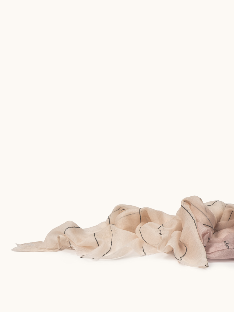 Połączenie wełny i jedwabiu to opowieść o harmonii między fakturą a światłem. Te chusty płynnie przechodzą między sezonami, tworząc wysmakowaną elegancję, która nie potrzebuje krzyku, by robić wrażenie .