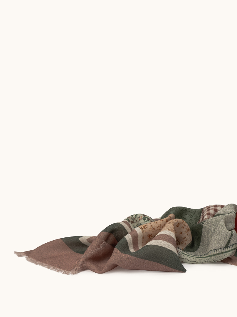Połączenie wełny i jedwabiu to opowieść o harmonii między fakturą a światłem. Te chusty płynnie przechodzą między sezonami, tworząc wysmakowaną elegancję, która nie potrzebuje krzyku, by robić wrażenie .