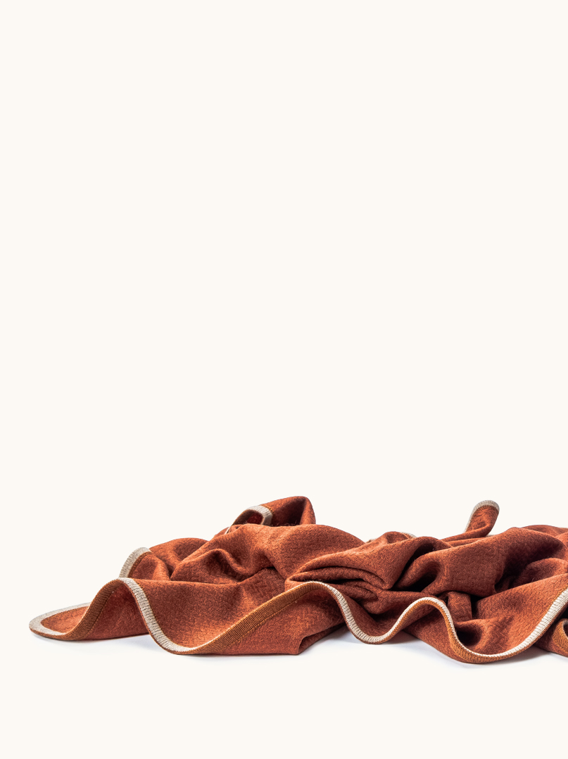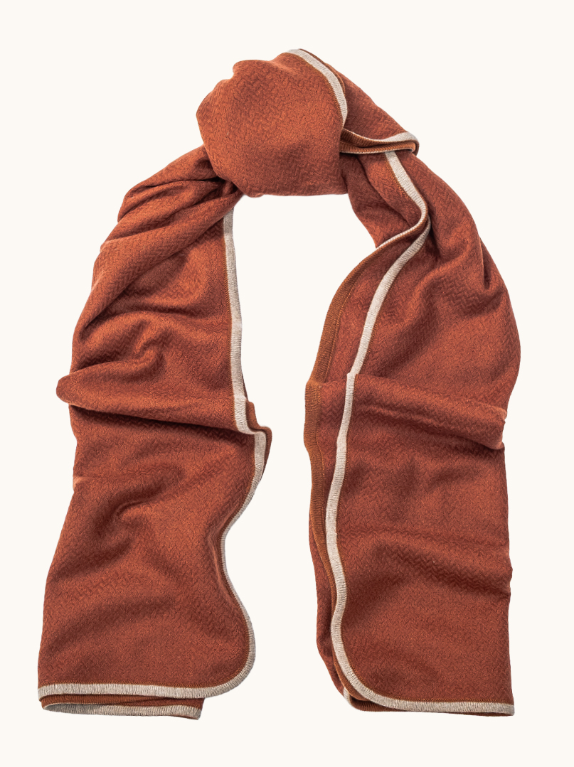 Kaszmirowy szal w kolorze miedzianym to elegancki dodatek wykonany w 100% z naturalnego kaszmiru najwyższej jakości. Tkanina jest wyjątkowo miękka, lekka i przyjemna w dotyku, a jednocześnie zapewnia doskonały komfort cieplny. Kaszmir naturalnie oddycha i dopasowuje się do temperatury, dzięki czemu szal sprawdza się zarówno zimą, jak i w chłodniejsze dni wiosny oraz jesieni.
