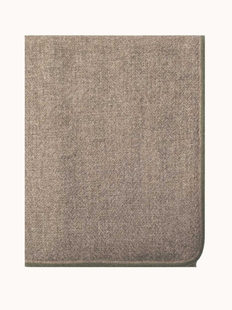 Subtelna, melanżowa struktura tkaniny podkreśla szlachetny charakter kaszmiru, a kontrastowa lamówka w odcieniu oliwkowej zieleni elegancko wykańcza krawędzie, nadając całości nowoczesny, minimalistyczny wygląd. To detal inspirowany estetyką premium i spokojną elegancją, który wyróżnia szal bez zbędnych ozdobników.