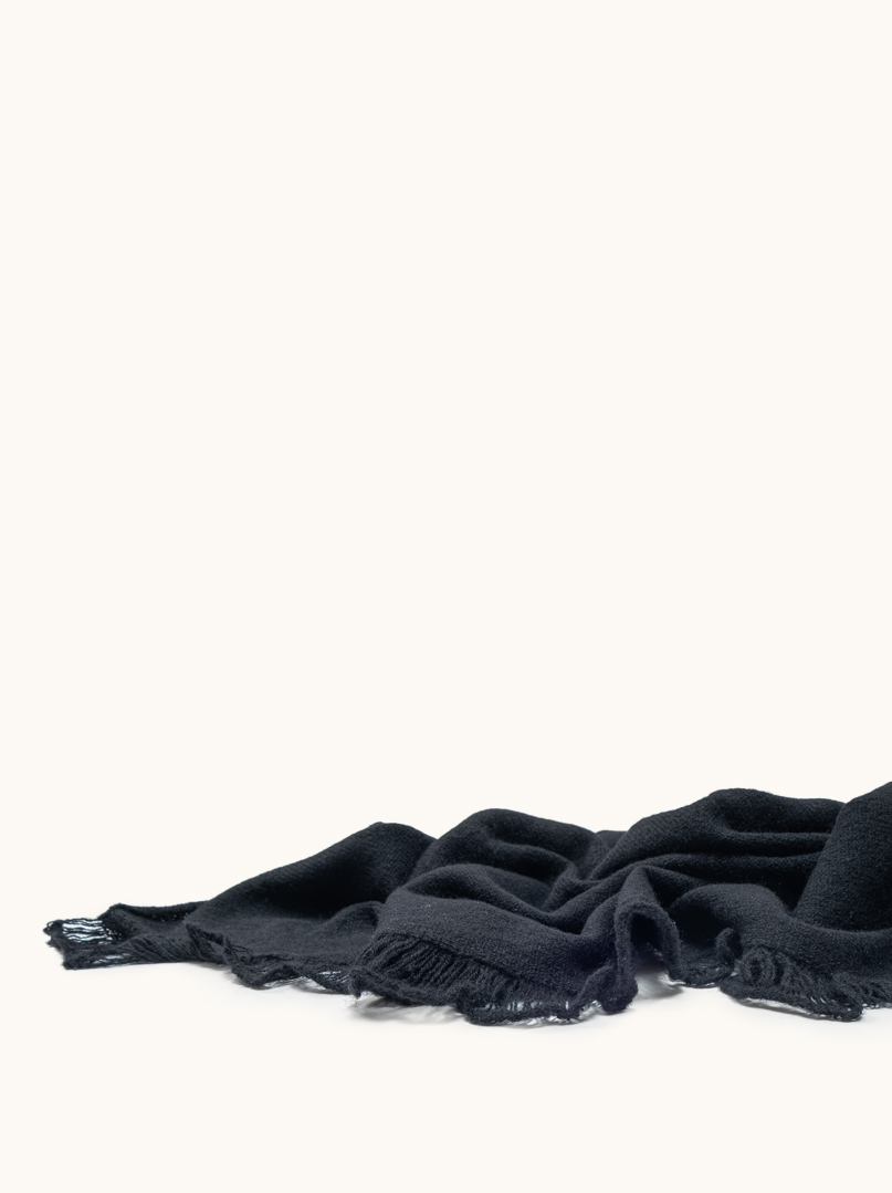 Czarny szal z 100% kaszmiru to esencja minimalistycznej elegancji i jakości premium. Wykonany z naturalnego kaszmiru najwyższej klasy, jest wyjątkowo miękki, lekki i niezwykle przyjemny w dotyku. Zapewnia doskonały komfort cieplny, jednocześnie pozostając przewiewnym i delikatnym dla skóry.