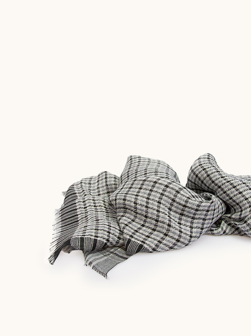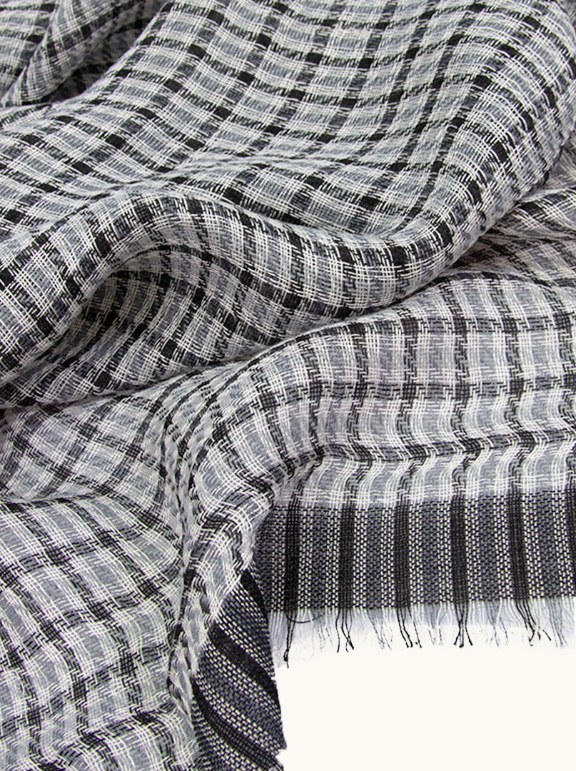 Połączenie wełny i jedwabiu to opowieść o harmonii między fakturą a światłem. Te chusty płynnie przechodzą między sezonami, tworząc wysmakowaną elegancję, która nie potrzebuje krzyku, by robić wrażenie .