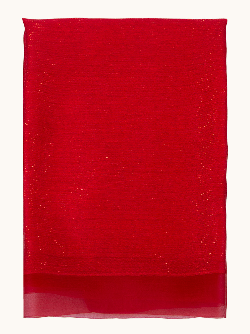 Intensywna czerwień w połączeniu z subtelnym połyskiem lurexu tworzy efekt wyrazisty, elegancki i pełen energii. To wizytowy szal, który przyciąga spojrzenia i dodaje stylizacji wyjątkowego charakteru.