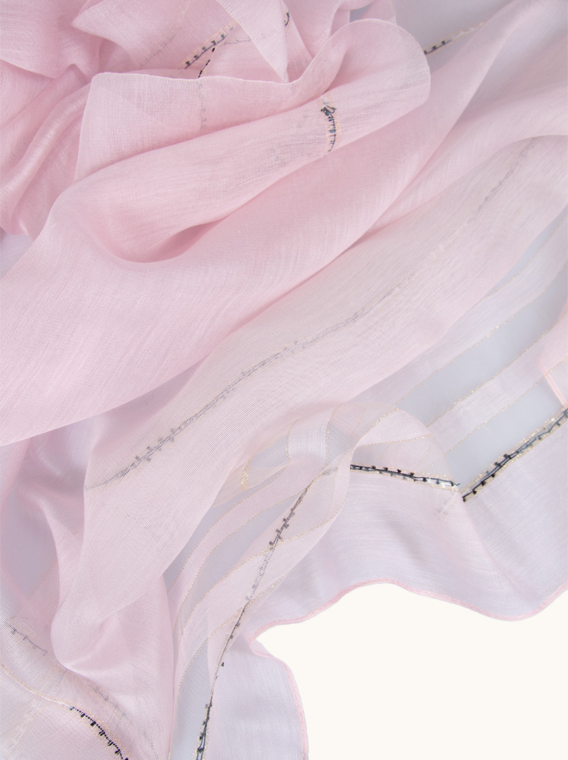 Połączenie wełny i jedwabiu to opowieść o harmonii między fakturą a światłem. Te chusty płynnie przechodzą między sezonami, tworząc wysmakowaną elegancję, która nie potrzebuje krzyku, by robić wrażenie .