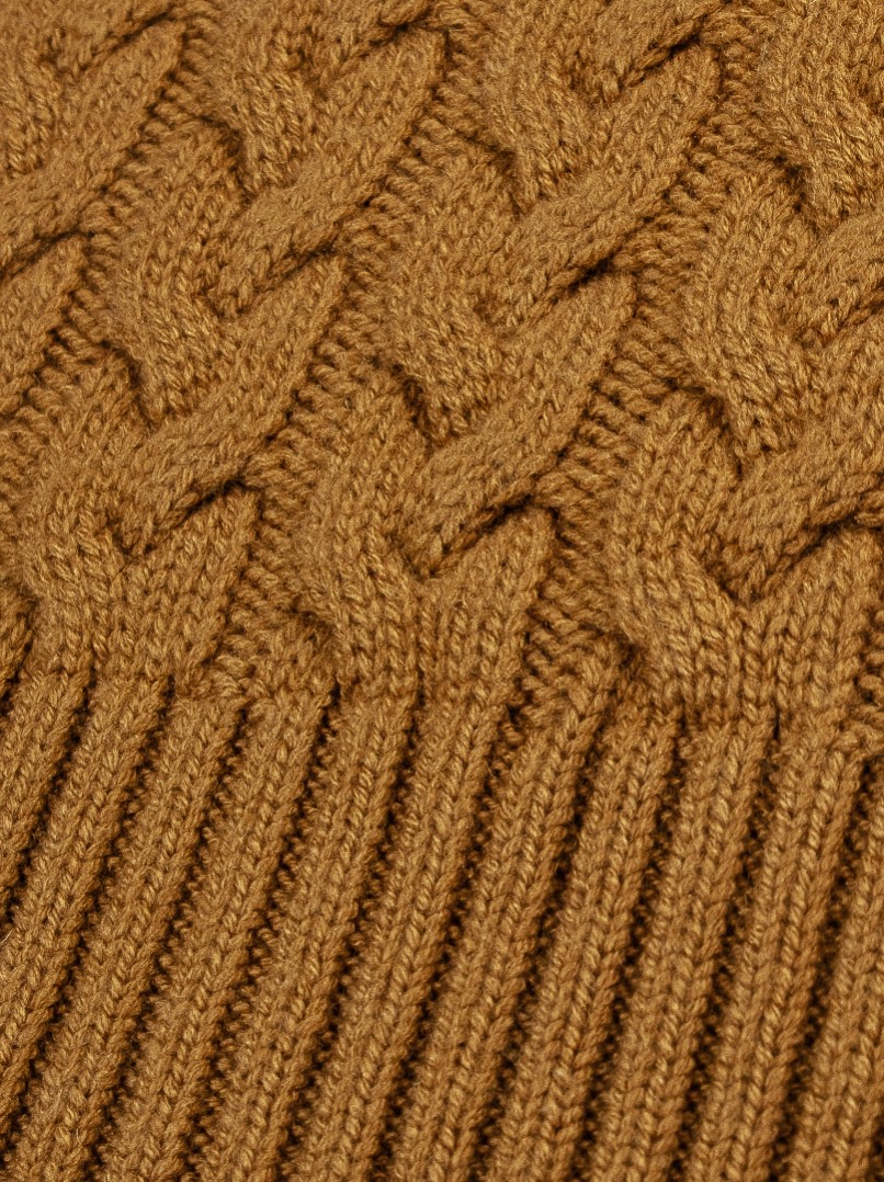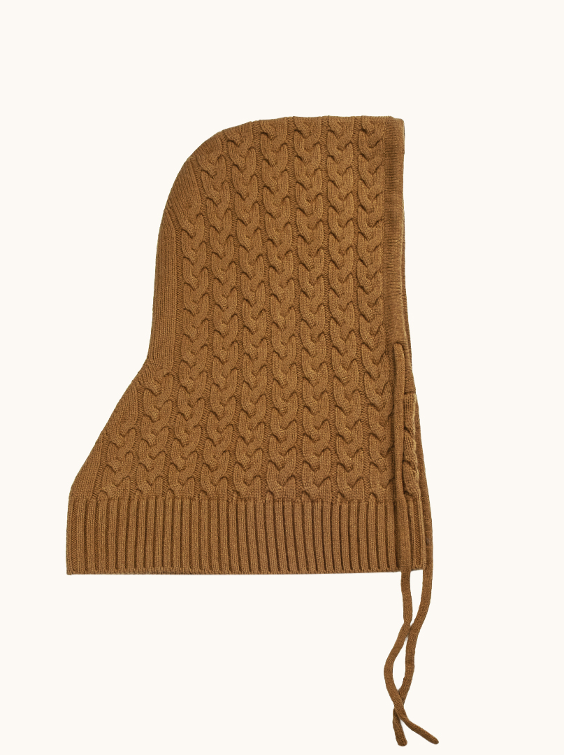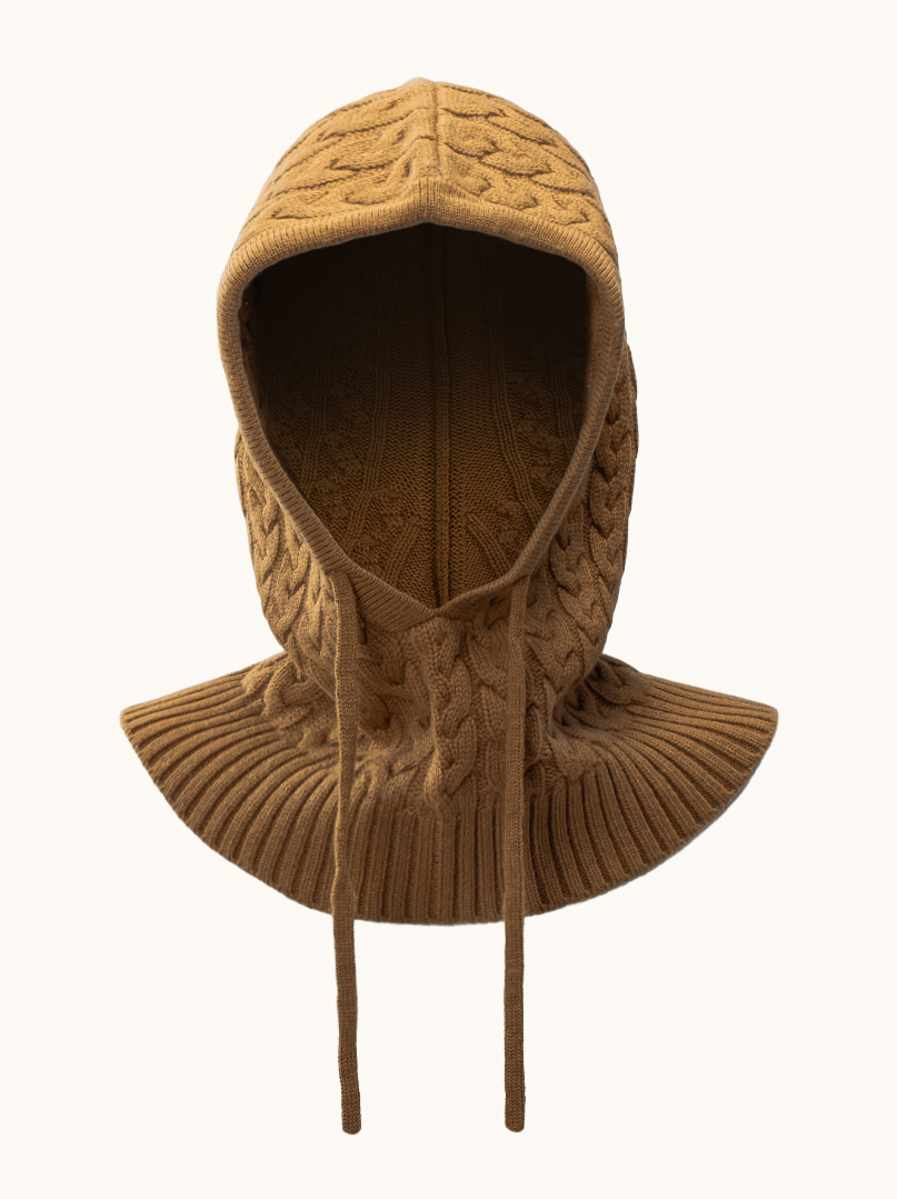 Ten kaptur to definicja zimowego komfortu. Wykonany z mieszanki 90% wełny owczej i 10% kaszmiru, łączy w sobie naturalne ciepło, miękkość i szlachetną strukturę. Dzianina jest mięsista, sprężysta i przyjemna w dotyku, a kaszmir dodaje jej subtelnej delikatności i luksusowego wykończenia.
